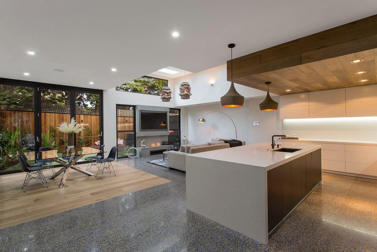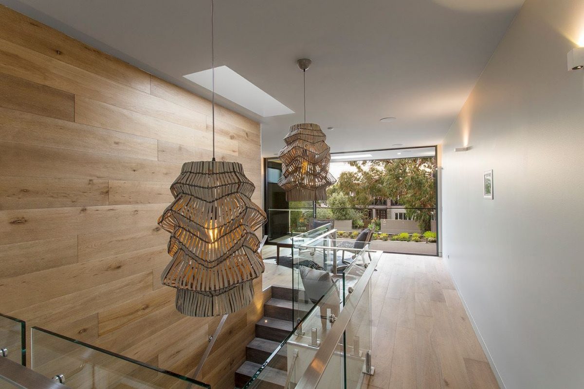 In the heart of Mid Century Modern Project 6 sits a development that harks back to the glory days of architecture with its use of glass and material selection. Bold square shapes create a form that has not been seen in the area for decades, timber clad garages seem to be hidden from view as they blend into the facade.